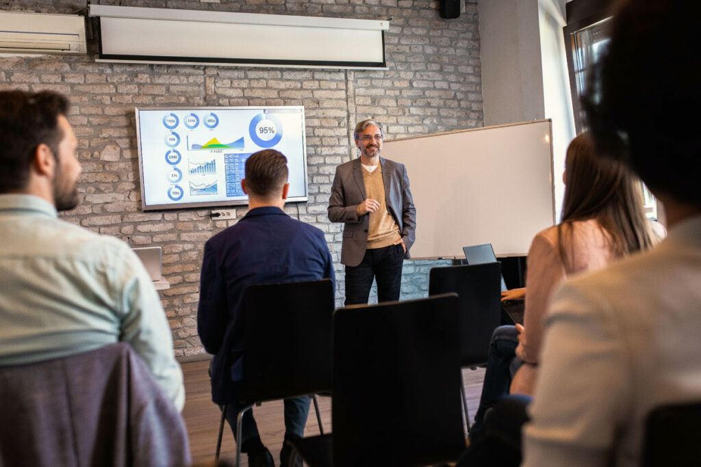 Nos diferencia el compromiso con la calidad, la cercanía con nuestros clientes, y la capacidad de diseñar y ejecutar programas de capacitación a medida, en distintas áreas y en todo el país. Nuestros cursos y servicios son innovadores, interactivos y adaptados a las necesidades específicas de cada empresa o institución, asegurando así una formación relevante y efectiva para cada organización.